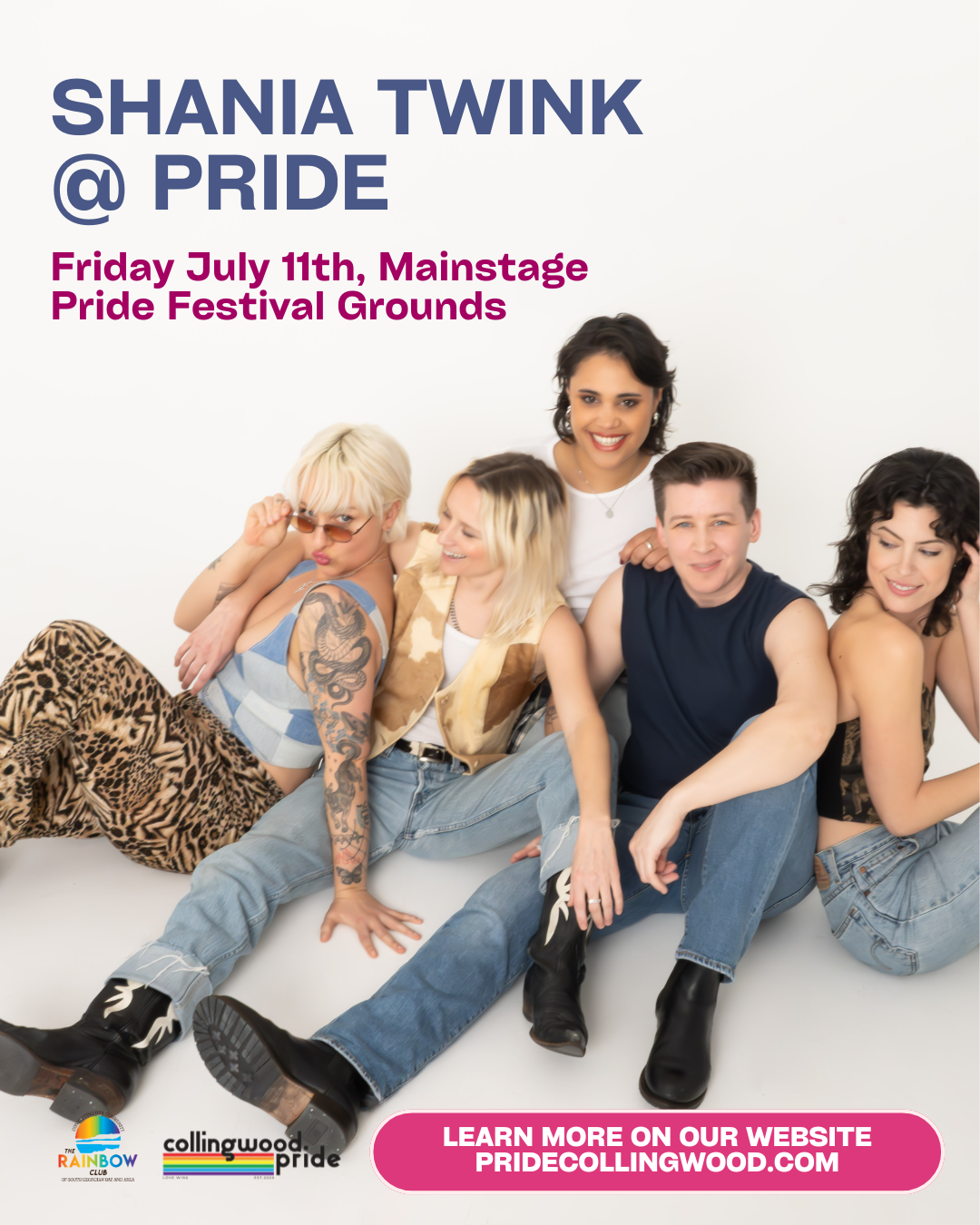 Jul 11 Friday HEADLINER: Shania Twink! Friday, July 11, 2025 8:30 PM 10:00 PM Pride Collingwood Festival Grounds (map) Google Calendar ICS LEARN MORE View Event →