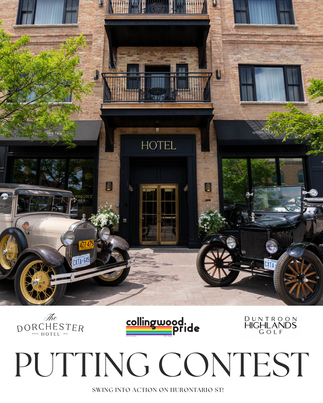 Jul 12 Saturday Pre-Parade Putting Contest at The Dorchester, with Duntroon Highlands Golf Saturday, July 12, 2025 3:30 PM 5:00 PM The Dorchester Collingwood (map) Google Calendar ICS LEARN MORE View Event →